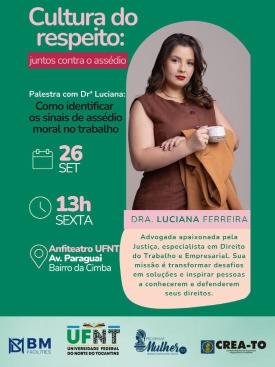 No dia 26 de setembro, a BM Facilities, em parceria com o CREA-TO, por meio do Programa Mulher, promoveu um importante evento no anfiteatro da UFNT (Universidade Federal do Norte do Tocantins), localizado na Av. Paraguai, bairro Cimba.
